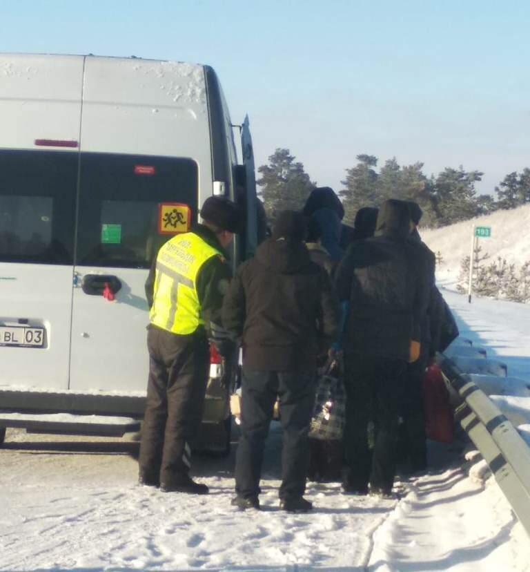 12 узбекистанцев вызволили казахстанские спасатели на трассе Астана-Петропавловск из сломанного автобуса