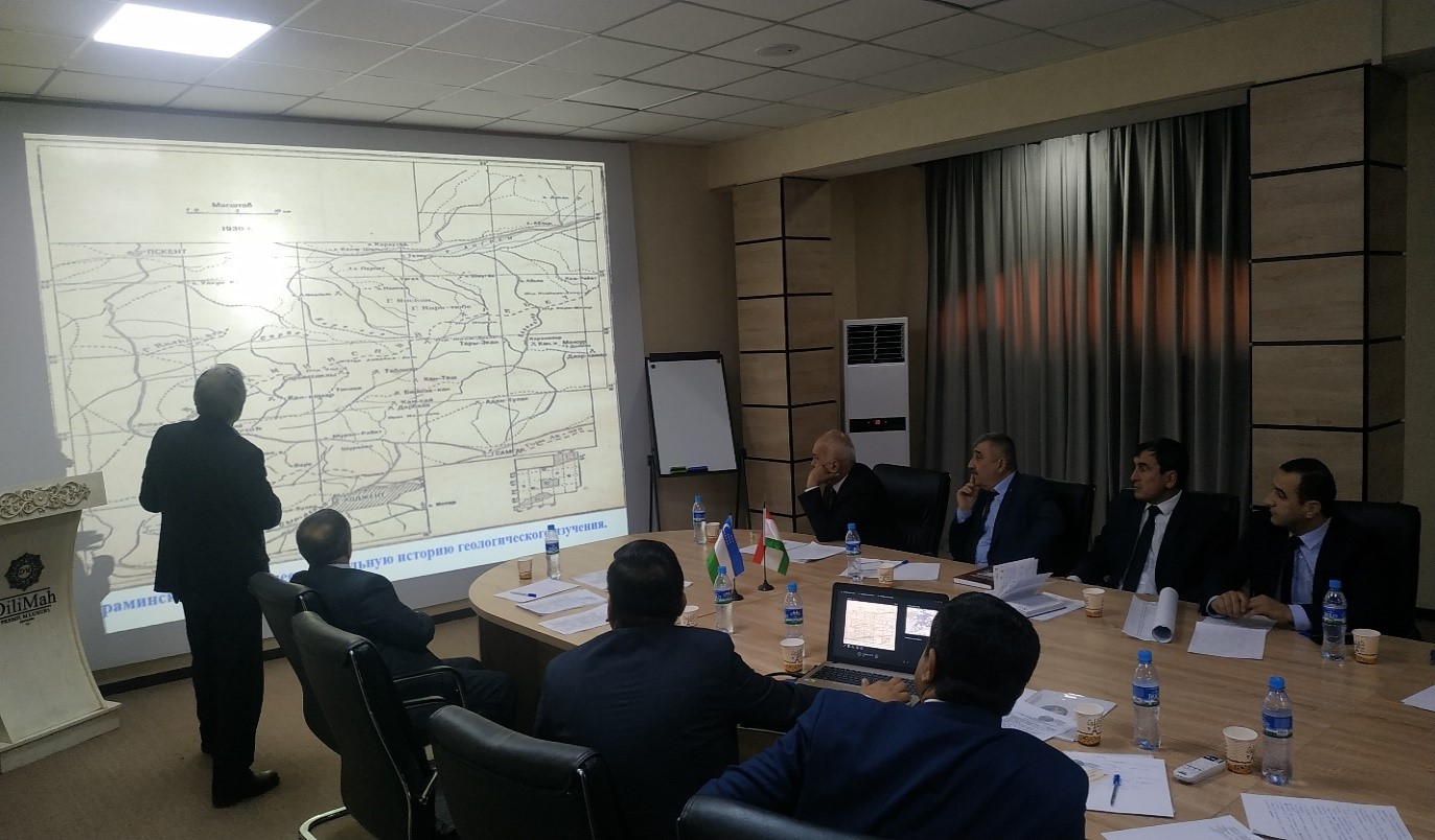 «Геологическое ведомство Таджикистана представило на заседании информацию о ходе оцифровки геологических карт страны М1:200 000 с целью дальнейшей сбивки приграничных листов и о деятельности и сборе информации со стороны центра экзогенных процессов ГУГ и дальнейшего сотрудничества в этом направлении», - сообщает главное управление геологии при правительстве РТ.