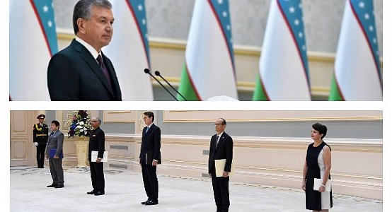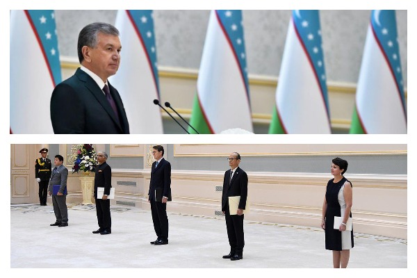 «20 сентября президент принял верительные грамоты вновь назначенных в Узбекистан чрезвычайных и полномочных послов Афганистана Ахмада Халида Элми, Индии Сантоша Джа, Великобритании Тимоти Торлота, Японии Ёшинори Фуджияма и Франции Изабель Сервоз-Галлуччи», - говорится в сообщении пресс-службы президента.