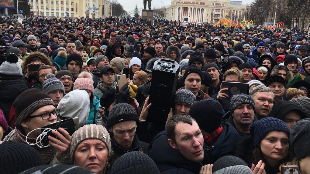 На митинг возле здания областной администрации на площади Советов жители собрались после призывов в социальных сетях, сообщают «Газета Кемерова» и ТАСС. Место проведения акции - буквально в 20 минутах ходьбы от сгоревшего ТЦ «Зимняя вишня», уточняет ТАСС.