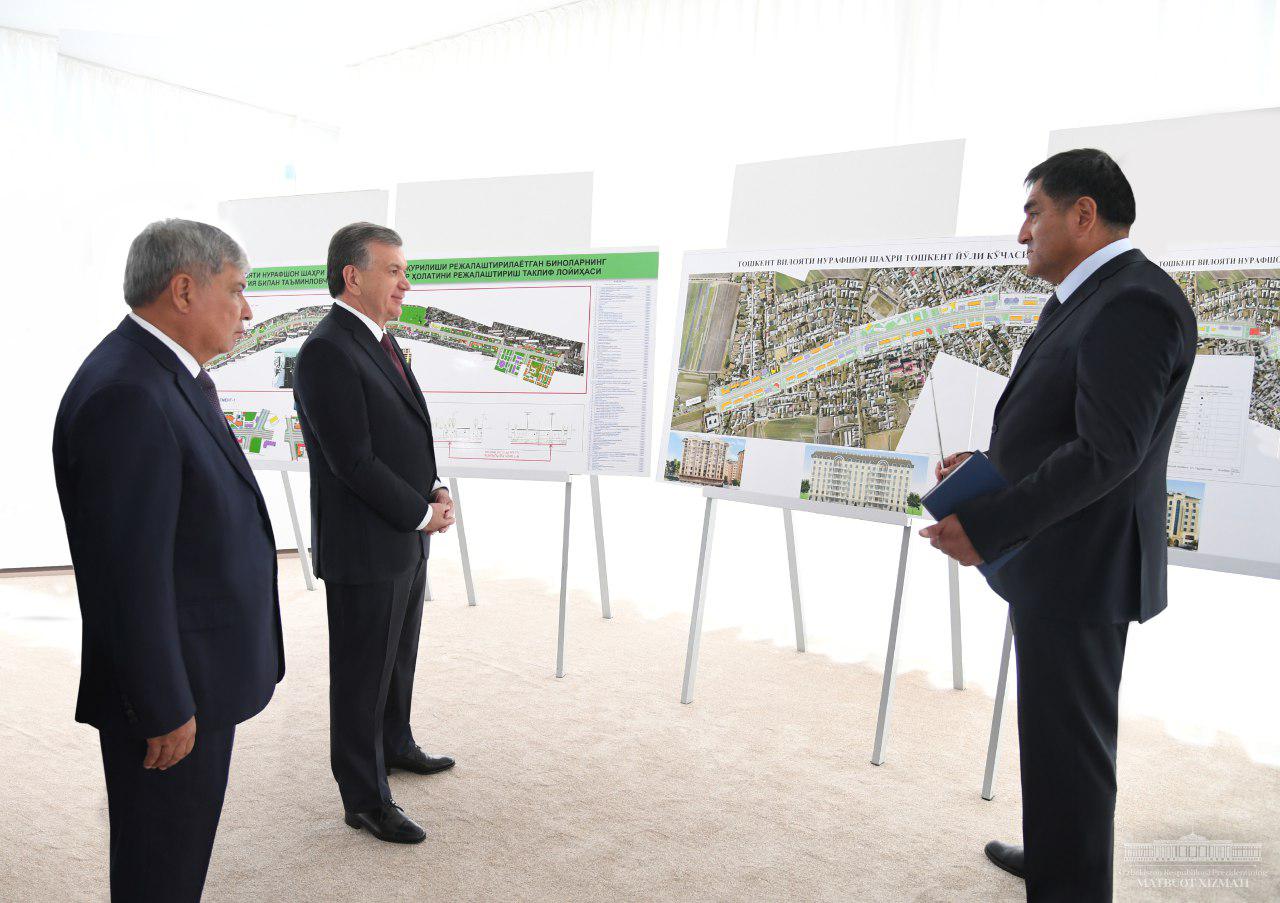 Также главе государства представлена информация о планировке центральной части города. Так, здесь намечено разместить здания хокимията (администрации) Ташобласти, территориальных управлений министерств и ведомств, объекты культуры, университеты и школы, больницы и спорткомплексы. При строительстве многоквартирного жилья запланировано использование энергосберегающих материалов.