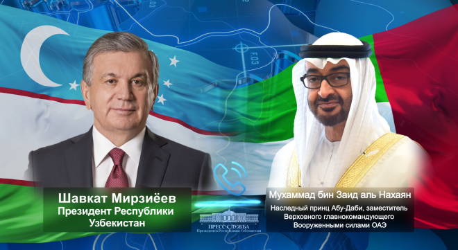 Состоялся телефонный разговор президента Узбекистана с наследным принцем Абу-Даби, сообщает Узбекское телеграфное агентство (УзТАГ).