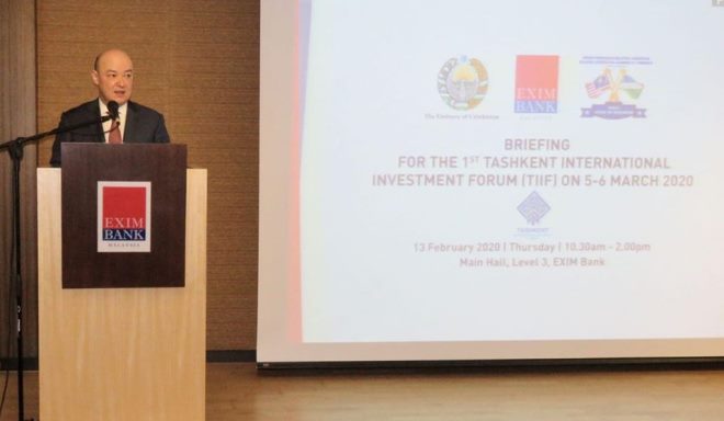 «Посольство Узбекистана провело в г.Куала-Лумпуре совместно с Эксимбанком Малайзии, Малазийской корпорацией по развитию внешней торговли (МАТРЭЙД) и Малазийско-Узбекской торговой палатой (МУТП) брифинг, посвященный предстоящему Ташкентскому международному инвестиционному форуму», - сообщает пресс-служба МИД Узбекистана.