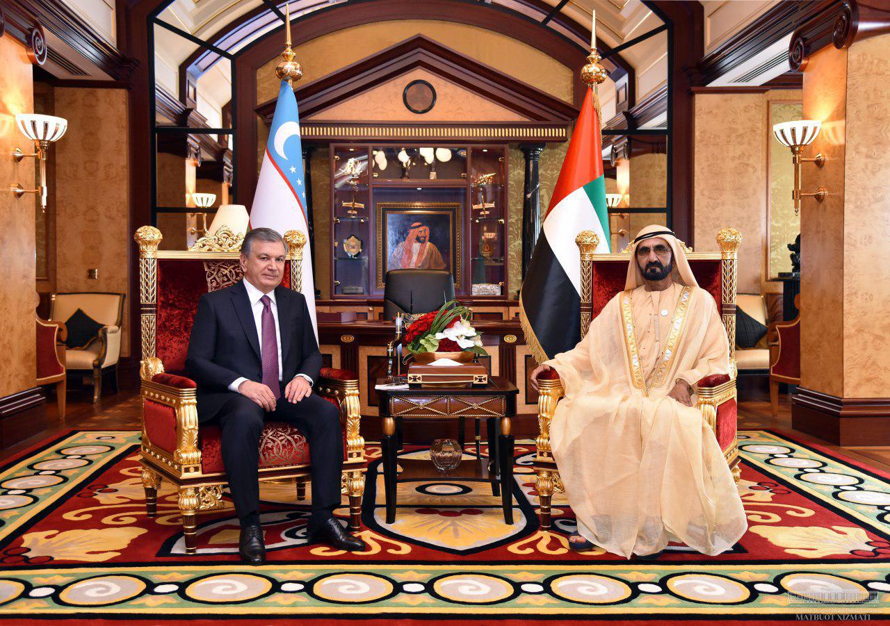 По данным пресс-службы узбекского лидера, в рамках официального визита в ОАЭ президент Узбекистана Шавкат Мирзиеев провел переговоры с вице-президентом, премьер-министром ОАЭ, эмиром Дубая Шейхом Мухаммадом бин Рашидом Аль Мактумом 26 марта во Дворце «Заабиль» в Дубае.