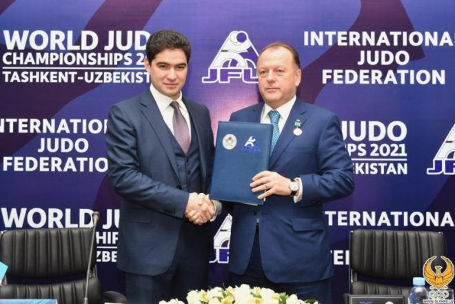 Документ подписали министр физической культуры и спорта республики Узбекистан Дилмурод Набиев, министр народного образования Шерзод Шерматов, председатель Федерации дзюдо Узбекистана Азизжон Комилов и президент IJF Мариус Визер.