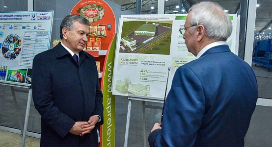 Также рассказано о проектах по организации совместным предприятием «Azia Metall Prof» оцинковки железа и полимеризации на территории свободной экономической зоны «Ургут», созданию интенсивного сада на площади 4,3 тыс. гектаров, организации хлопково-текстильных кластеров, капельному орошению, развитию птицеводства