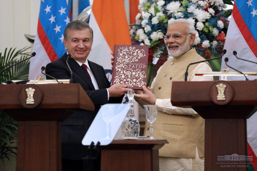 Отмечается, что принято совместное заявление президента Узбекистана Шавката Мирзиеева и премьер-министра Индии Нарендры Моди.