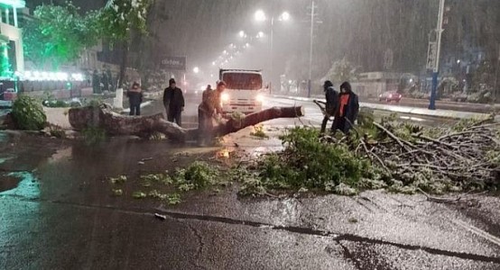 По данным городской администрации, из-за сильного снегопада сломано множество деревьев, обрывы произошли на 44 линиях электропередачи. Жители многих районов остались без электричества.