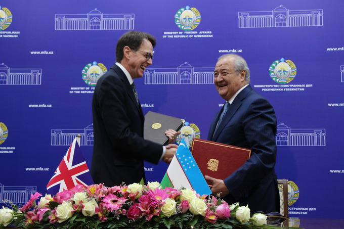 "31 октябрь куни Ўзбекистон ташқи ишлар вазири Абдулазиз Комилов ва Буюк Британиянинг фавқулодда ва мухтор элчиси Тимоти Торлот Ўзбекистон Республикаси билан Буюк Британия ва Шимолий Ирландия Бирлашган Қироллиги ўртасида шериклик ва ҳамкорлик тўғрисидаги битимни имзоладилар", - дейилади Ташқи ишлар вазирлиги матбуот хизмати хабарида.